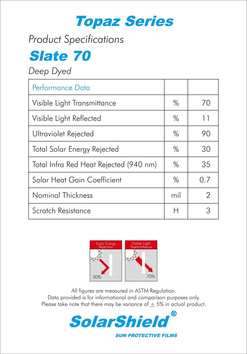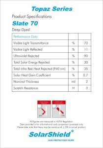 Engineered to deliver a higher standard of performance, SolarShield® Sun Protective Films are manufactured in USA using state-of-the-art technology and is known for its quality, color stability, zero fading, non-diminishing performance, and excellent optical clarity.