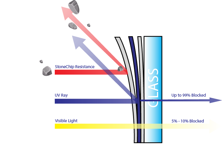 SolarShield® Windshield Protective Film is a world-class, top-performing windshield safeguard to protect the glass from exterior damage of rock chips, sandstorm, pitting, whenever driving at high speeds. It can keep the glass in its original perfect condition and effectively reduce the cost of glass replacement due to damage.